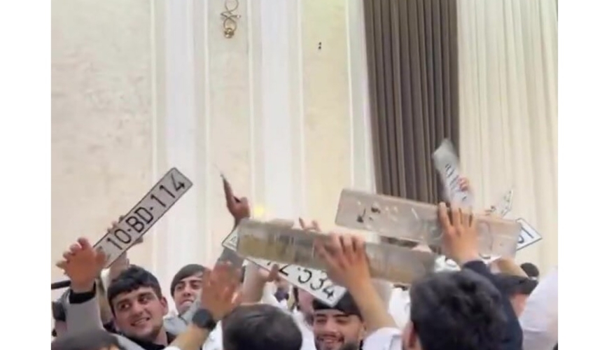 Məclis zamanı bəyin dostları əllərində avtomobillərinin dövlət qeydiyyat nişanlarını (seriya nömrələrini) tutaraq rəqs ediblər. Bu anlar qonaqlar tərəfindən lentə alınaraq sosial şəbəkələrdə paylaşılıb.