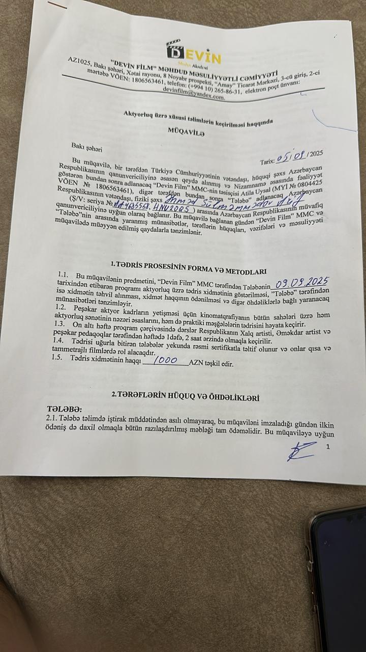 “Devin Medya Akademi” adlı qurumun fəaliyyətində daha bir fırıldaqçılıq hadisəsi aşkarlanıb. Qeyd edək ki, bir müddət əvvəl bu şirkətin film çəkilişləri üçün həvəskar aktyorlar axtardığı barədə elan yayılmış, nəticədə yüzlərlə vətəndaş aldadılmışdı.