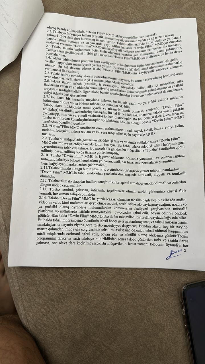 Redaksiyamıza müraciət edən vətəndaş Əhməd Gülməmmədov da şirkətin fəaliyyətindən zərərçəkənlərdəndir. Onun sözlərinə görə, “Devin Medya Akademi” ondan 250 manat məbləğində ödəniş alıb, lakin bu günə qədər nə təlimlər təşkil olunub, nə də vəsait geri qaytarılıb.