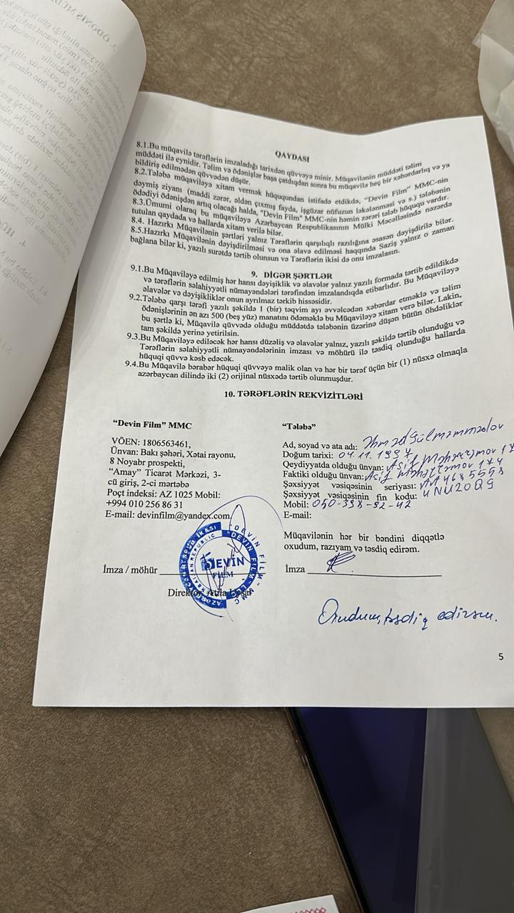 “Şirkət sadəcə vədlərlə vaxtı uzadır. Mənim kimi onlarla insan aldadılıb. Pulumuzu alıblar, amma nə çəkiliş var, nə də təlim,” – deyə Əhməd Gülməmmədov bildirib.