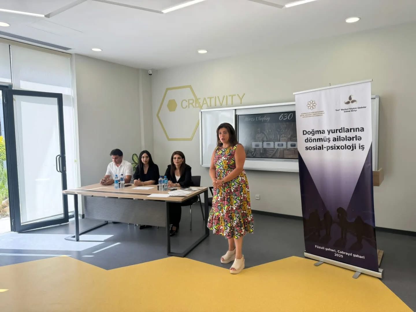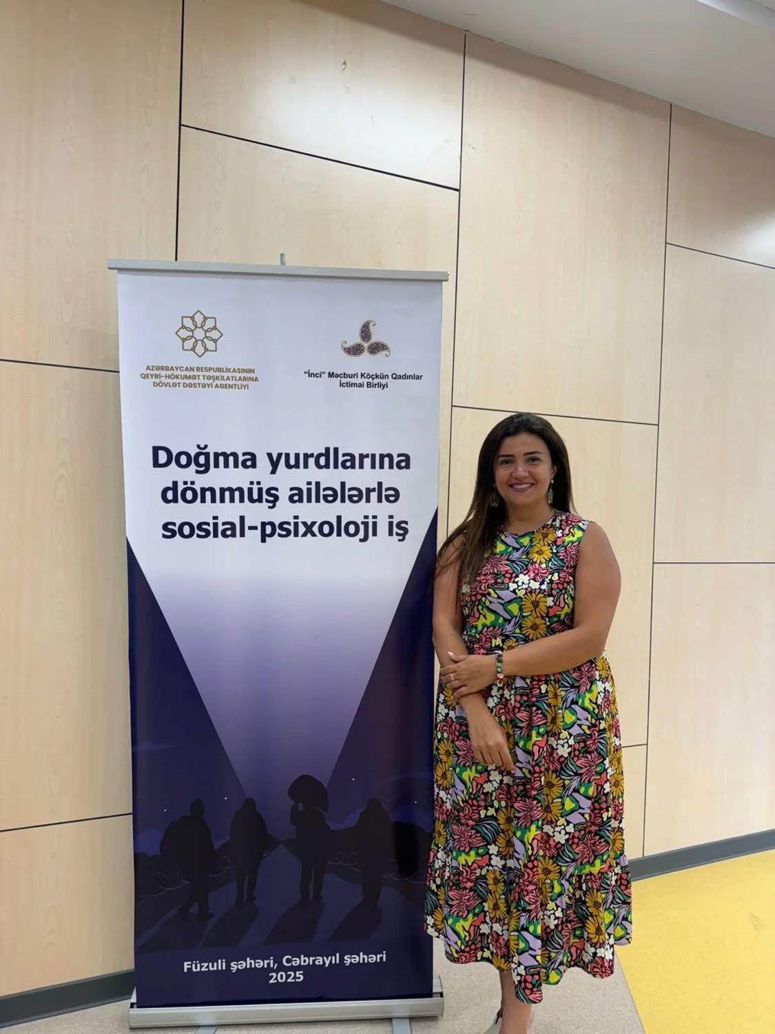 O, doğma yurdlarına qayıdan ailələrin psixoloji rifahının gücləndirilməsinin, xüsusilə də qadın və uşaqlarla məqsədyönlü psixoloji işin aparılmasının əhəmiyyətini vurğulayıb. Təlim interaktiv müzakirələr, qrup tapşırıqları və fərdi yanaşma elementləri ilə müşayiət olunub.