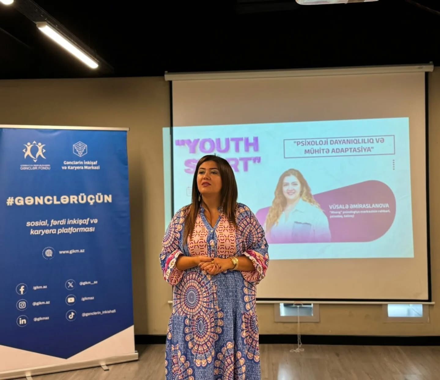 19 sentyabr tarixində Gənclərin İnkişaf və Karyera Mərkəzinin təşkilatçılığı ilə gənclərin fərdi inkişafına yönəlmiş növbəti maarifləndirici sessiya baş tutub. Tədbirdə “Ahəng Psixoloji İnkişaf və Dəstək” İctimai Birliyinin sədri, psixoloq-təlimçi Vüsalə Əmiraslanova “Psixoloji dayanıqlıq və mühitə adaptasiya” mövzusunda təlim keçib.