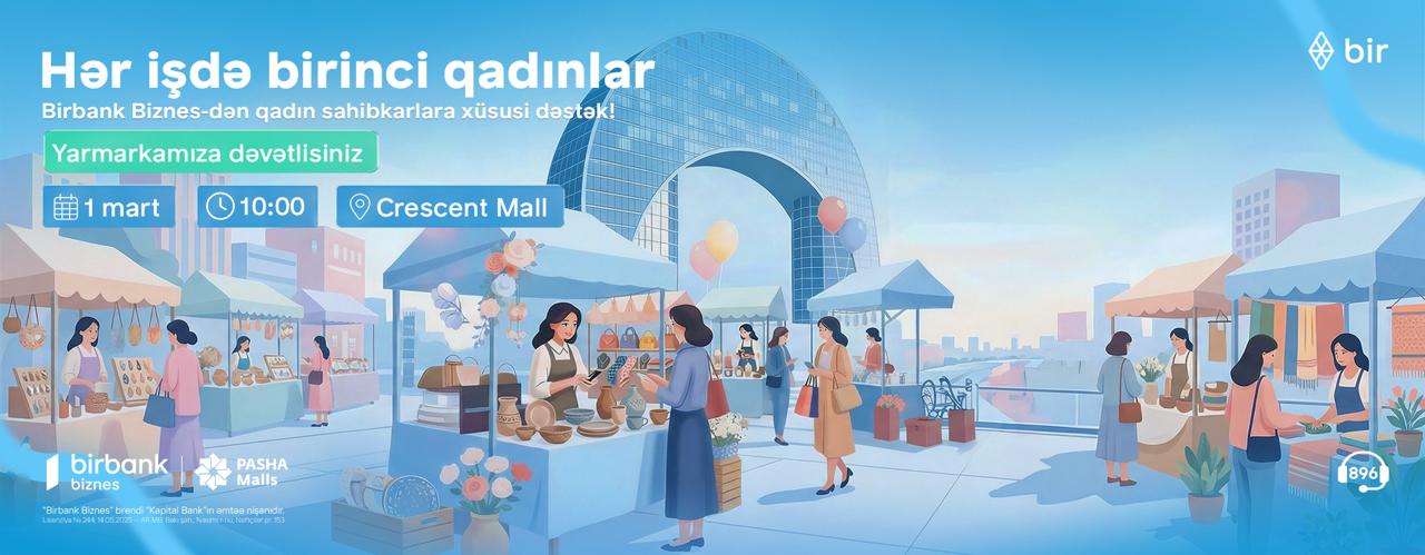 Belə ki, 1 mart 2026-cı il tarixində xanım sahibkarlar üçün “Hər işdə birinci qadınlar” yarmarkası keçiriləcək. PASHA Malls-un dəstəyi ilə baş tutacaq yarmarka Crescent Mall-da saat 10:00-da start götürəcək.