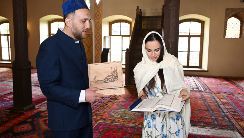 Sonda Leyla Əliyevaya və Arzu Əliyevaya “Qurani-Kərim” hədiyyə olunub.