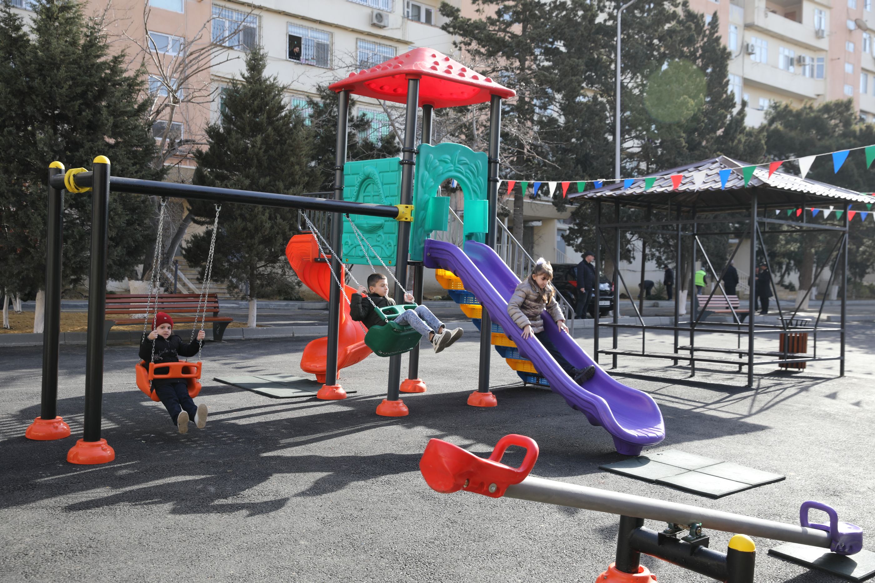 Ərazidə mövcud yaşıllıqlara aqrotexniki qaydada qulluq olunmuş və əlavə olaraq yeni ağaclar əkilmişdir. Sakinlərin avtomobillərinin nizamlı parklanmasını təmin etmək məqsədilə xüsusi parklanma yerləri yaradılmışdır.
