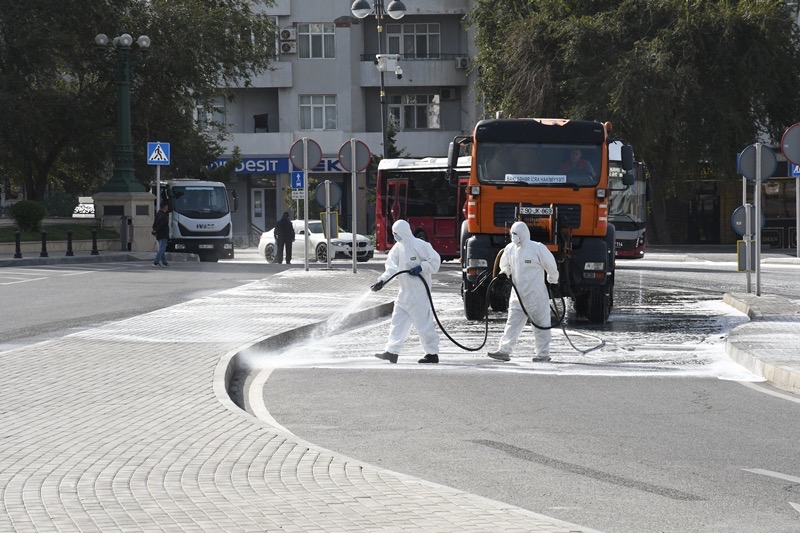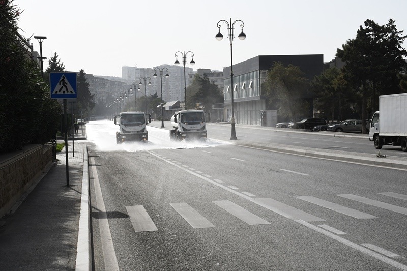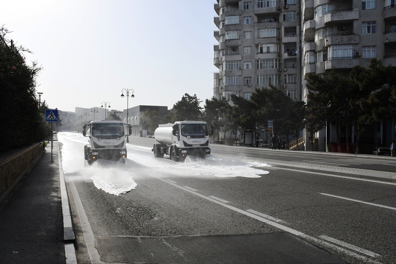 Bakı Şəhər İcra Hakimiyyəti Kommunal təsərrüfat xidmətlərinin texnikası səhər saatlarından başlayaraq bitki və canlılara zərər verməyən yuyucu maddələrlə əsas küçə və prospektlərin yuyulmasını aparıb. Bu zaman həm də məhəllədaxili və ara yollar da yuyulub.