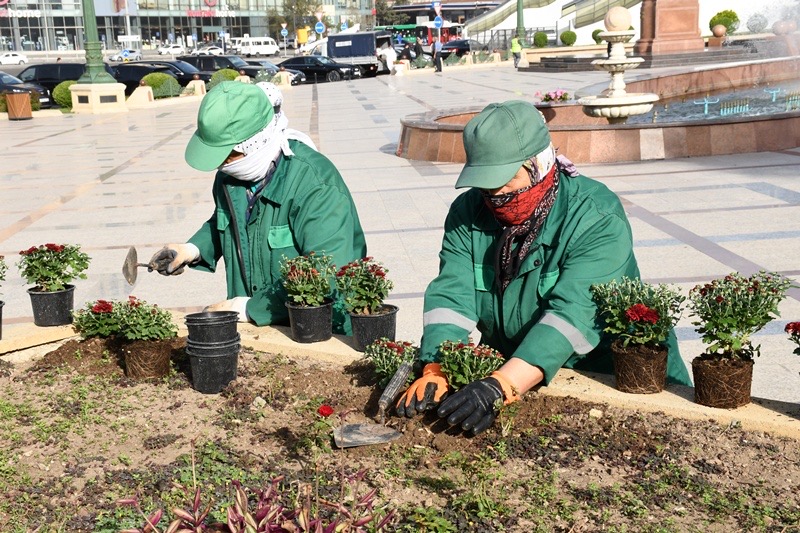 Eyni zamanda, şəhər sakinləri və paytaxtımızın qonaqlarının zövqünü oxşayacaq rəngbərəng güllər əkilib, müxtəlif rəngli güllərdən kompozisiyalar yaradılıb.