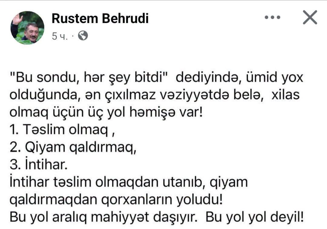 Rüstəm Behrudi ən çox bəyəndiyim, poeziya ruhuna sayğı duyduğum 3 nəhəng şairdən, söz adamından biridir – Məmməd Araz və Musa Yaqubla birlikdə…