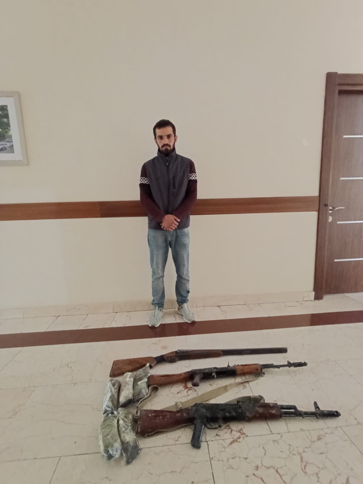 Polis əməkdaşları tərəfindən Xocavənd rayonunda keçirilən tədbirlərlə Güney Xırman kəndində müvəqqəti yaşayan və tikinti şirkətlərindən birində çalışan 26 yaşlı Rəşad Salahov şübhəli şəxs qismində saxlanılıb. Onun yaşadığı evdən 2 “Kalaşnikov” avtomatı, 1 “İJ” markalı ov tüfəngi, 5 patron darağı və 150 ədəd patron aşkarlanaraq götürülüb.