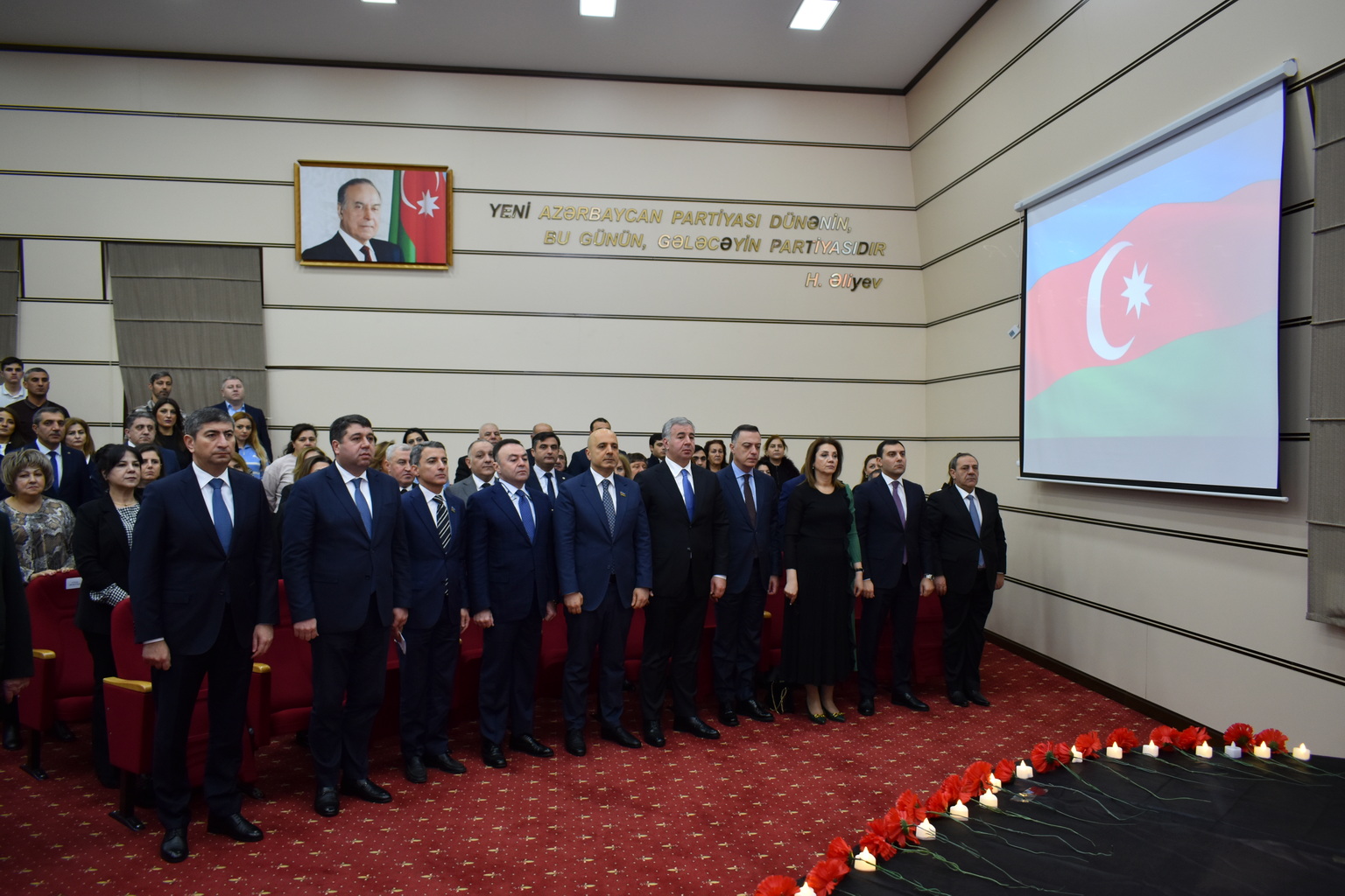 Tədbirdə əvvəlcə Azərbaycan Respublikasının Dövlət Himni səsləndirilib. Sonra müasir, müstəqil Azərbaycan Respublikasının banisi Ümummilli Lider Heydər Əliyevin və Azərbaycan Respublikasının suverenliyi, ərazi bütövlüyü uğrunda canından keçən və 20 Yanvar şəhidlərimizin əziz xatirəsi bir dəqiqəlik sükutla yad edilib. 20 Yanvar-Ümumxalq Hüzn Gününə həsr olunmuş video çarx nümayiş etdirilib.